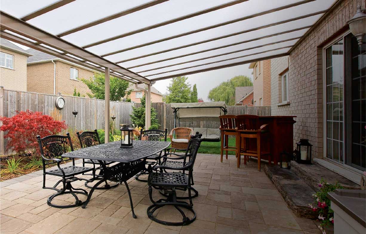 Our patio covers are crafted with precision using high-quality Canadian-made aluminum components and are available in both glass and acrylic. They are strategically designed to let natural light in but eliminate the sun’s harmful UV rays, providing a reliable, covered solution for any outdoor setting.