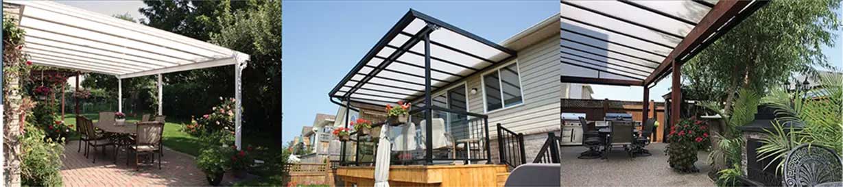 Our patio covers are crafted with precision using high-quality Canadian-made aluminum components and are available in both glass and acrylic. They are strategically designed to let natural light in but eliminate the sun’s harmful UV rays, providing a reliable, covered solution for any outdoor setting.